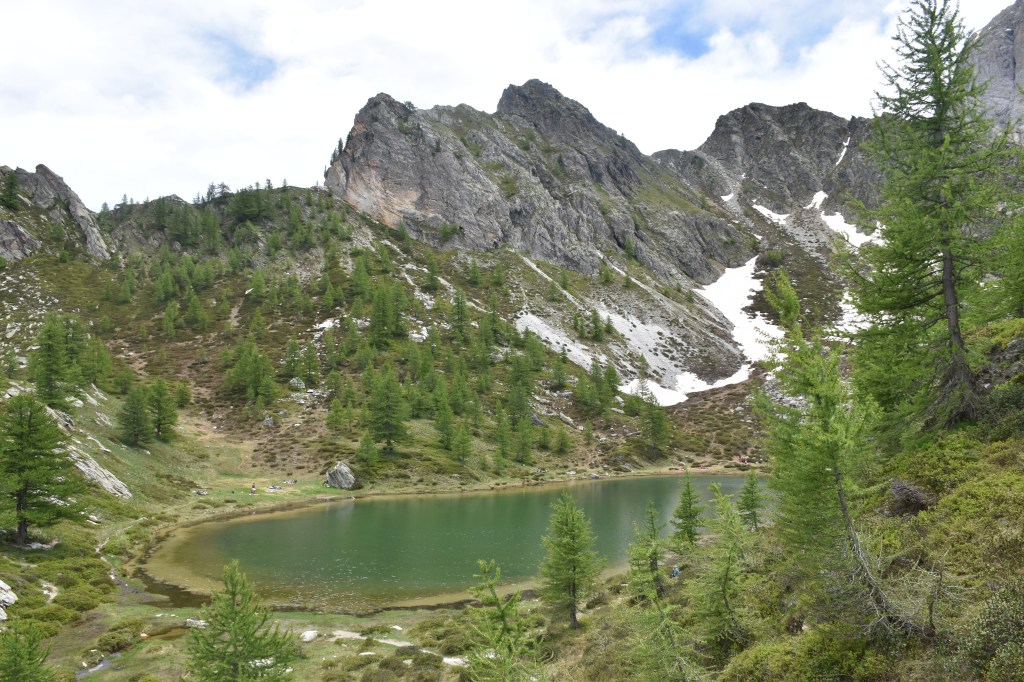 Per il rientro si prosegue lungo il lago e si continua lungo il sentiero che inizia a salire lungo il ruscello, fonte d’acqua del lago. Proseguendo lungo il sentiero in circa 10 minuti si arriva ad un altro laghetto, che in alcuni periodi dell’anno può essere secco. Qui si apre una spettacolare vista su tutto il Piano della Gardetta e su tutte le montagne che lo circondano.